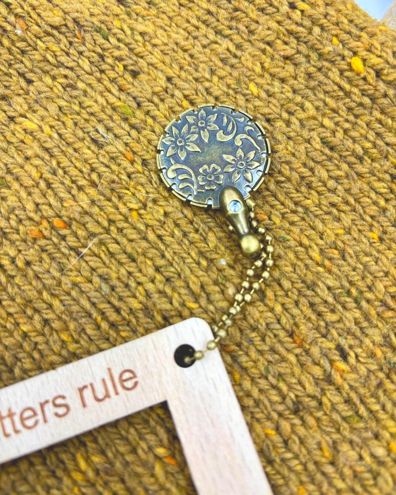 Perfect your knitting and crochet projects with this ingenious wooden gauge measurement tool featuring a built-in metal thread cutter! This compact 5cm/2-inch square combines two essential crafting functions - precise gauge measurement and convenient thread cutting - in one beautiful, portable tool that fits perfectly in any project bag.