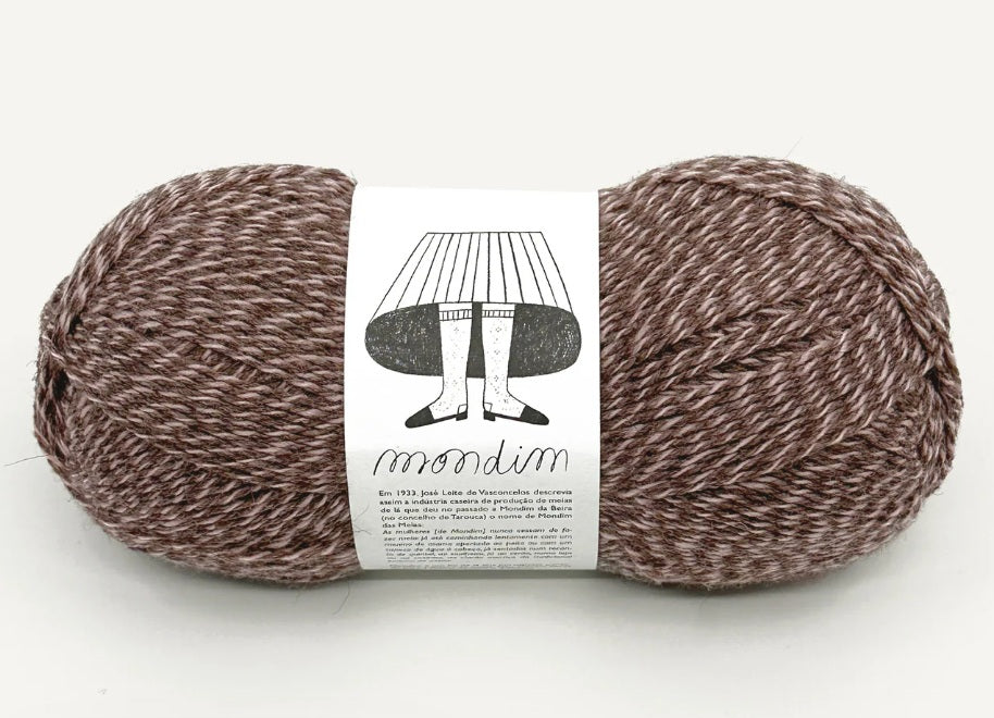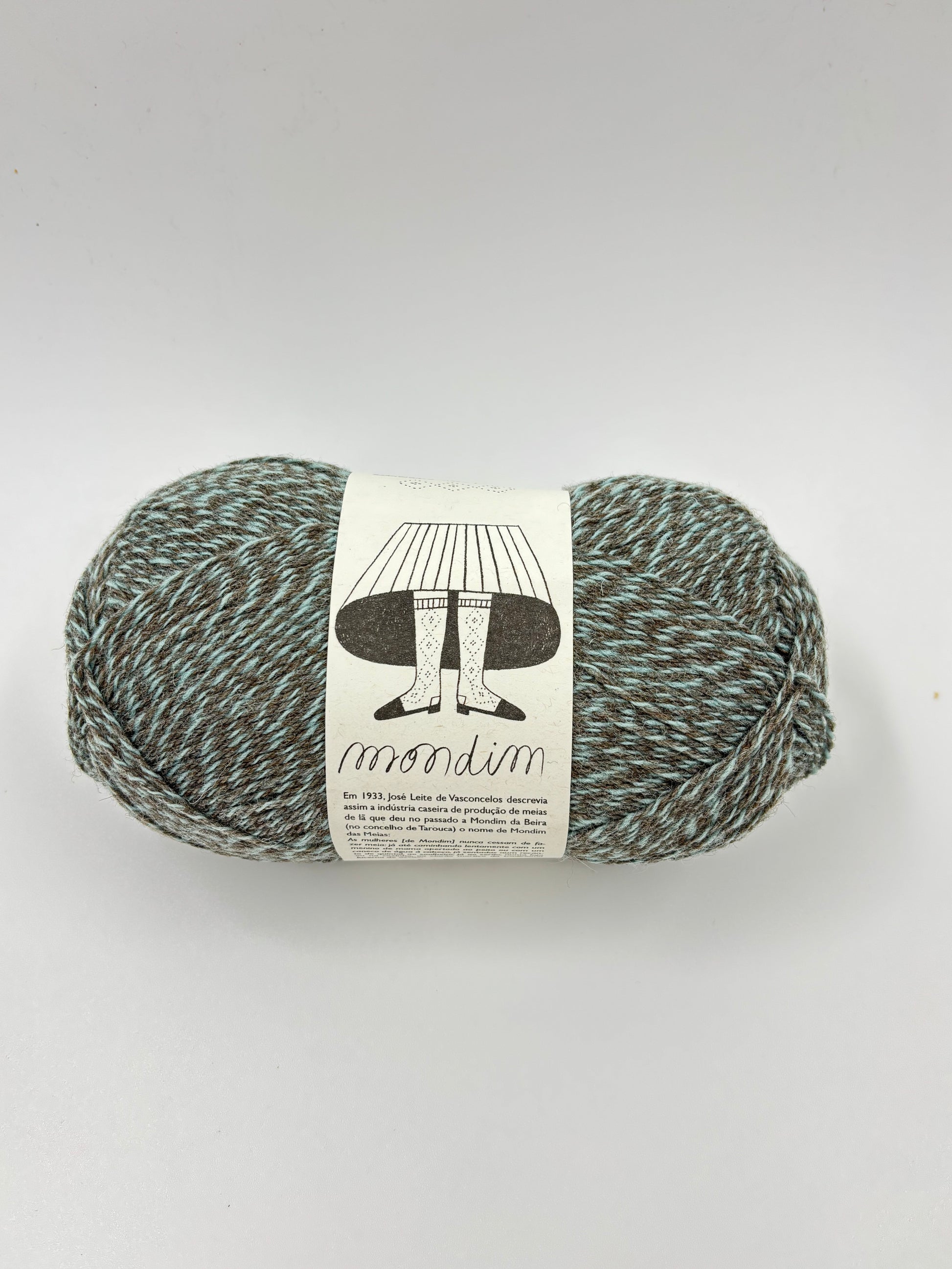 (FR) Mondim est un fil de laine fine portugaise qui ne contient aucune fibre synthétique ni traitement chimique. Les couleurs 100, 300, 400 et 500 ne sont pas teintes, révélant la beauté naturelle de la laine.